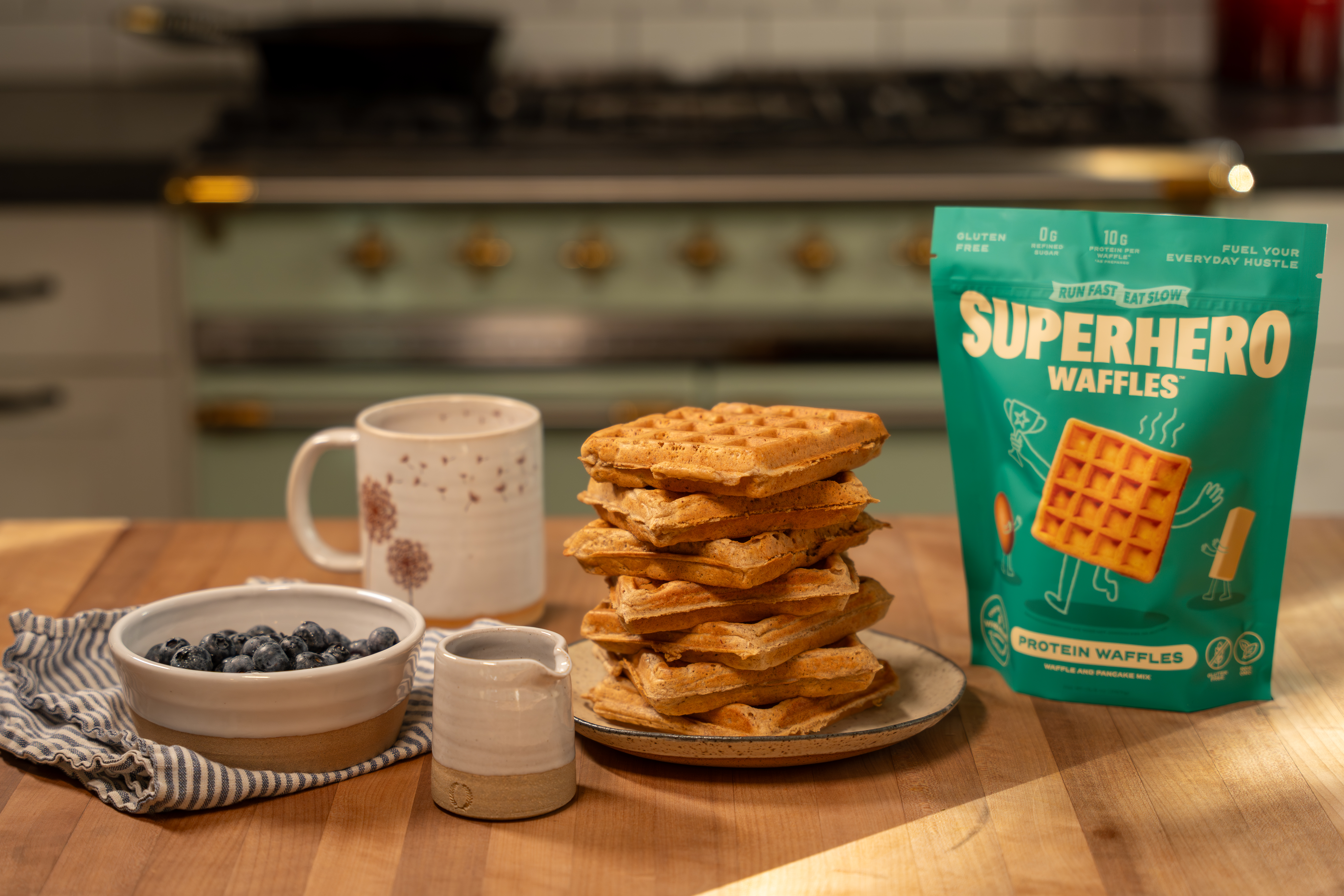 Our Superhero Waffle & Pancake Mix is different. It’s designed to be made with real breakfast staples — eggs, milk, yogurt, and butter — adding natural protein, healthy fats, and staying power for a balanced, satisfying meal.
